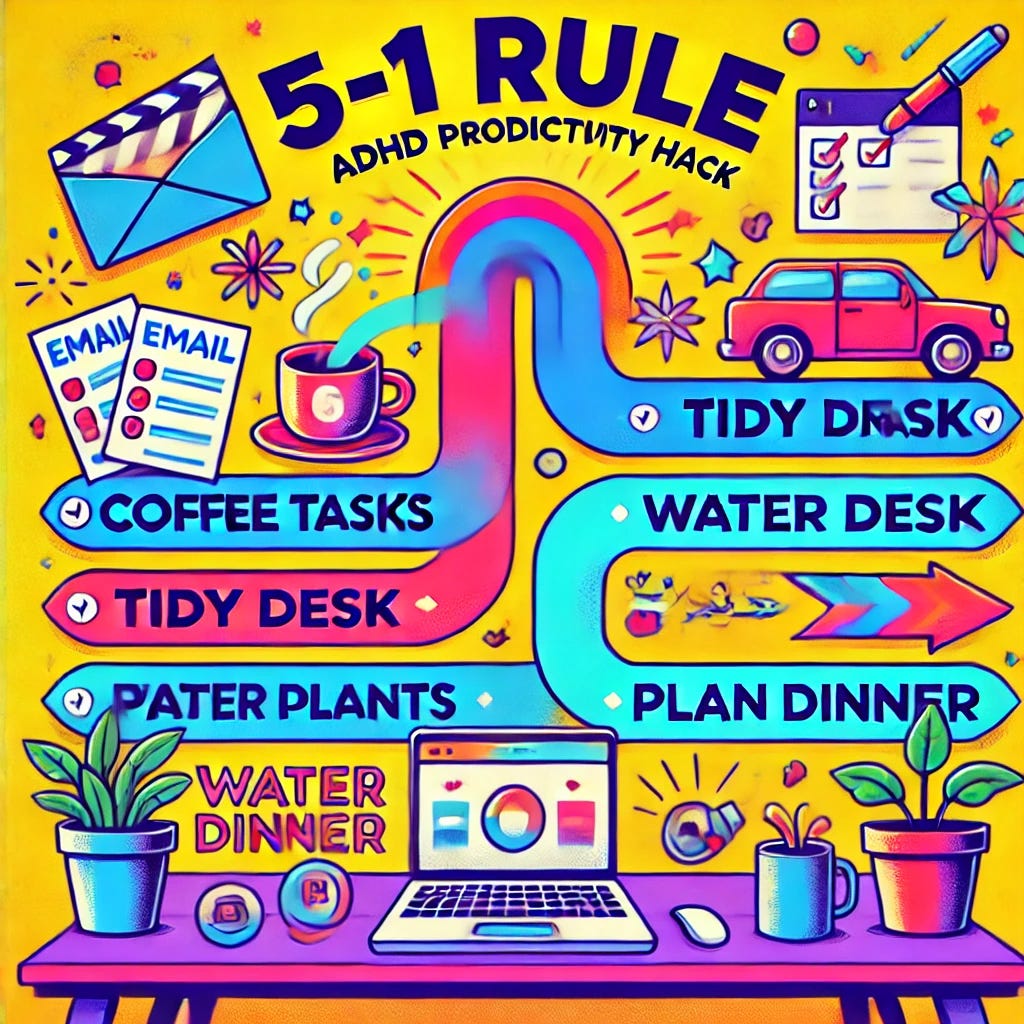🎯💡Boost Your ADHD Productivity: The Power of the 5-1 Rule! From overwhelm to focus and clarity!🌟📝